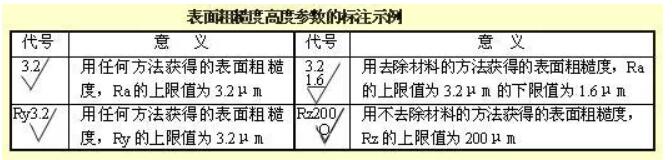 GB/T 131-1993規(guī)定了表面粗糙度代號及其注法。圖樣上表示零件表面粗糙度的符號見下表。