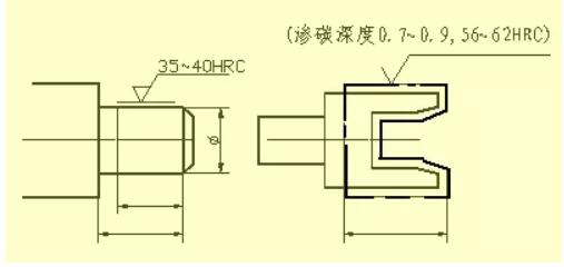 需要將零件局部熱處理或局部鍍(涂)覆時,應用粗點畫線畫出其范圍并標注出相應尺寸,也可將其要求注寫在表面粗糙度符號長邊的橫線上。