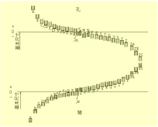 從基本偏差系列圖中可以看出:孔的基本偏差A~H和軸的基本偏差k~zc為下偏差; ,孔的基本偏差K~ZC和軸的基本偏差a~h為上偏差,JS和js的公差帶對稱分布于零線兩邊、孔和軸的上、下偏差分別都是+IT/2、-IT/2?;酒钕盗袌D只表示公差帶的位置,不表示公差的大小,因此,公差帶一端是開口,開口的另一端由標準公差限定。