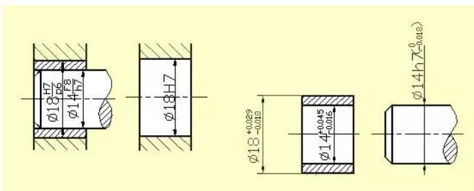 配合代號由孔和軸的公差帶代號組成,寫成分數(shù)形式,分子為孔的公差帶代號,分母為軸的公差帶代號。凡是分子中含H的為基孔制配合,凡是分母中含h的為基軸制配合。