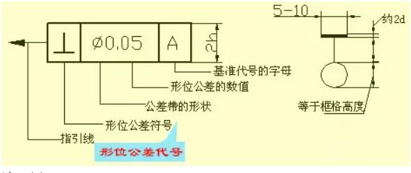 形位公差代號包括:形位公差各項目的符號,形位公差框格及指引線,形位公差數(shù)值和其他有關符號,以及基準代號等??蚋駜茸煮w的高度h與圖樣中的尺寸數(shù)字等高。
