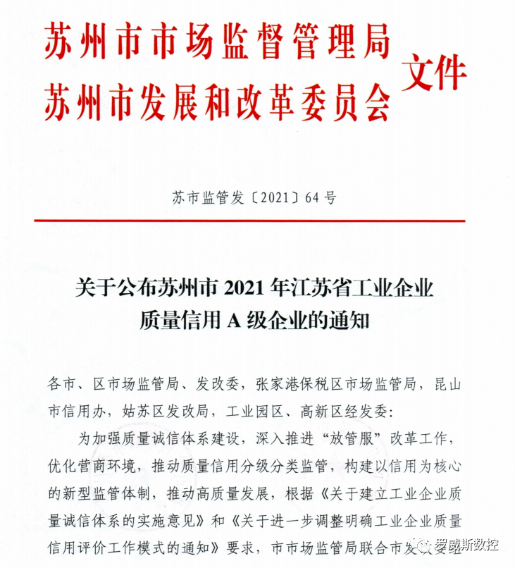 近日,江蘇省市場監(jiān)管管理局和江蘇省發(fā)展和改革委員會發(fā)布的《關(guān)于公布2021年度江蘇省工業(yè)企業(yè)質(zhì)量信用A級企業(yè)名單的通知》中蘇州昆山市共有28家企業(yè)在全省質(zhì)量信用等級評價(jià)中獲得A級。